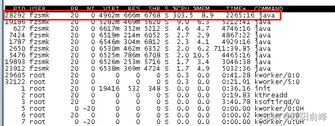 1 | 执行命令:top -H -p 28292 |