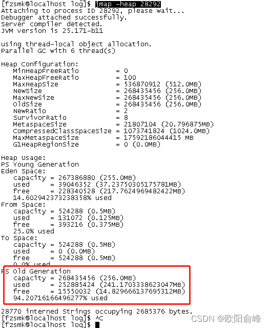 1 | 执行命令:jmap -heap 28292 |